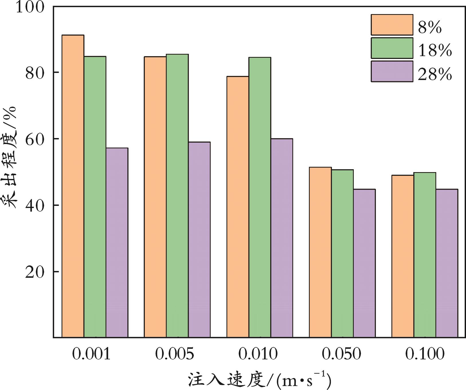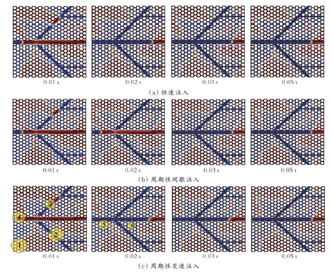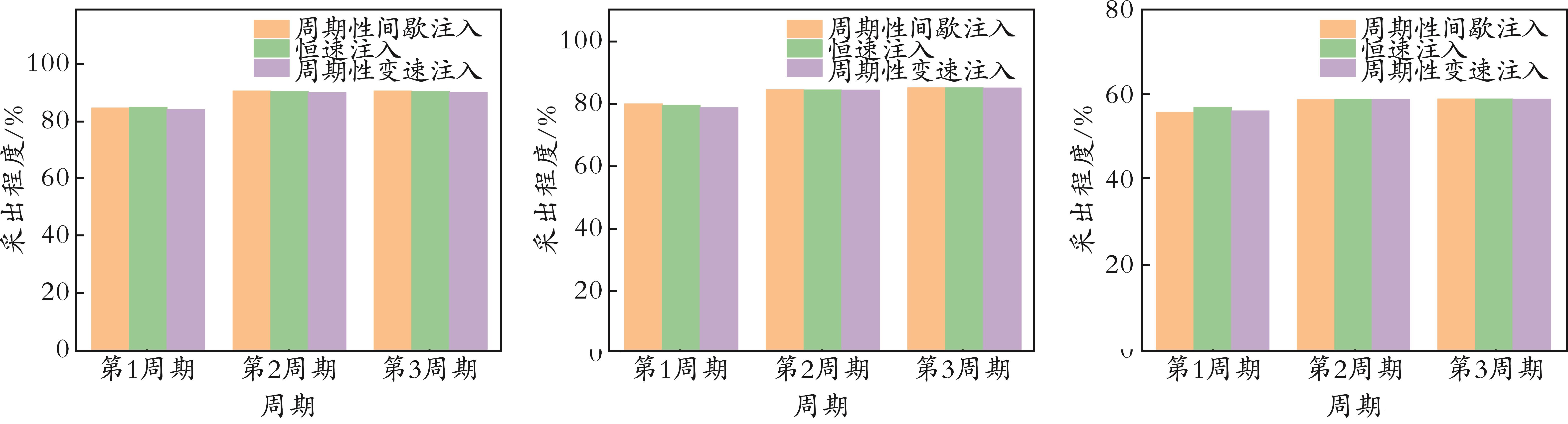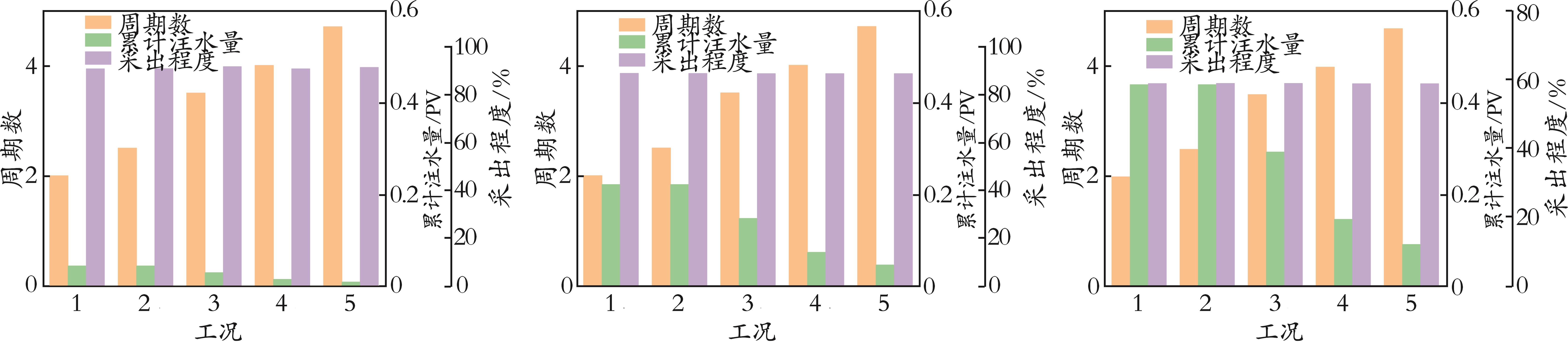 基于Navier?Stokes方程与相场理论耦合方法,构建了含裂缝混合润湿致密油藏孔隙尺度数值模型,研究了不同注入速度、注入方式及注停时间下的渗吸采油过程。结果表明,注入速度与采出程度呈非线性关系,0.01 m/s为最佳注入速度,此时毛细管力与黏滞力动态平衡,裂缝?基质压力传递效率最优,采出程度达峰值;周期性间歇注水方式较恒速注水可节水48%,而采出程度仅降低1.08%,在低油价下经济性更优;较短的注停时间配合高频次注水,可形成周期性压力波动,累计注水量减少80%,可实现与长周期注水相同的采油效果。研究混合润湿致密油藏注水开采过程中注入参数对渗吸?驱替协同增效机制的影响规律,为优化注入方式提供了理论依据。
