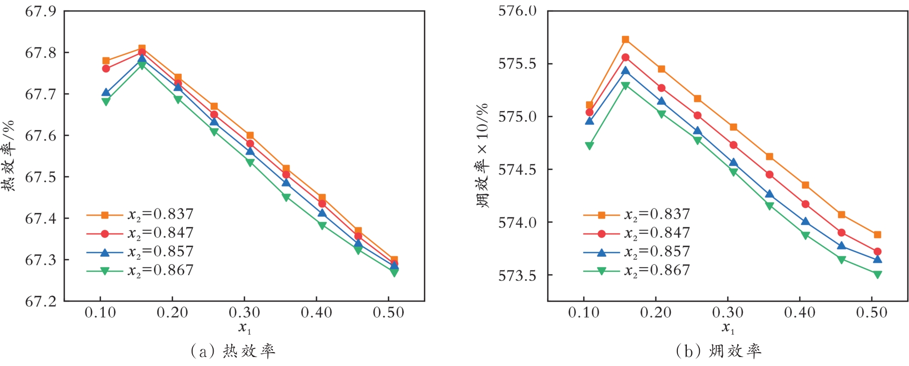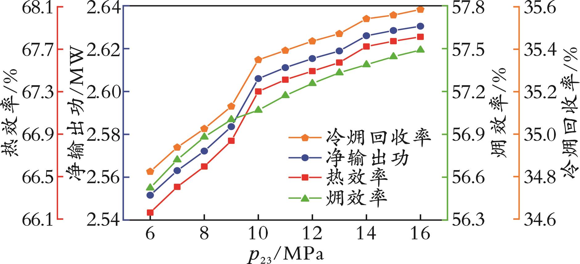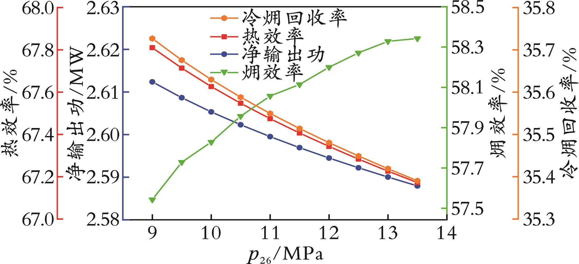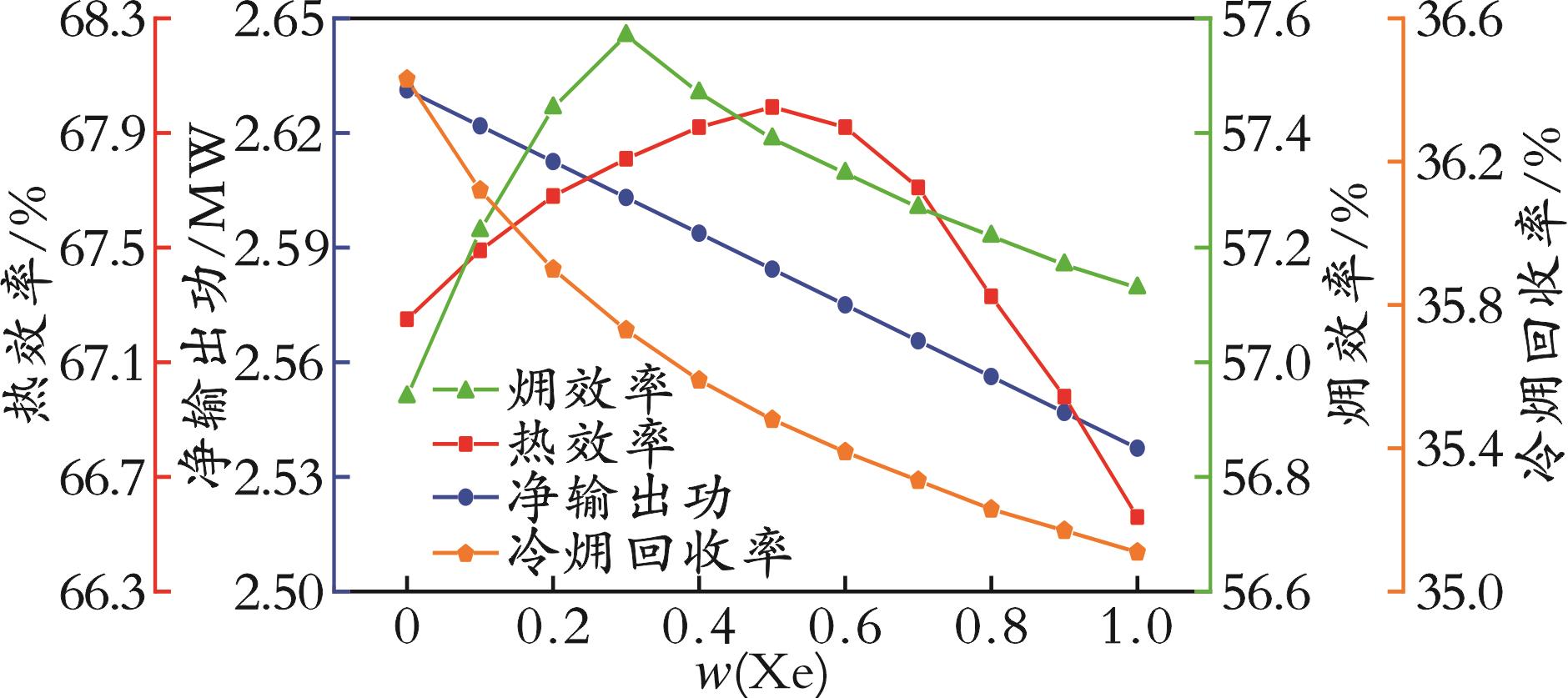 针对以天然气为燃料的固体氧化物燃料电池余热回收与液化天然气冷能利用相结合以及烟气中CO2的捕集问题,提出了一种由双重再压缩布雷顿循环、CO2回热朗肯循环和双级闪蒸循环构成的新型冷热电联供系统;采用热力学仿真软件对该循环系统进行模拟,分析了混合工质中Xe质量分数、CO2回热朗肯循环膨胀机入口压力p23、闪蒸循环的泵出口压力p26和分流比x对系统热效率、?效率、净输出功和冷?回收率的影响。结果表明,提高p23有利于提升系统的热效率、?效率和净输出功;降低p26有利于提升系统的净输出功及热效率,提高Xe质量分数与分流比x可提升系统的循环净功、热效率与?效率;当Xe质量分数为0.3、p23为16 MPa、p26为13.5 MPa时,系统的热效率、?效率、净输出功分别为67.17%、58.13%、2 587.96 kW。