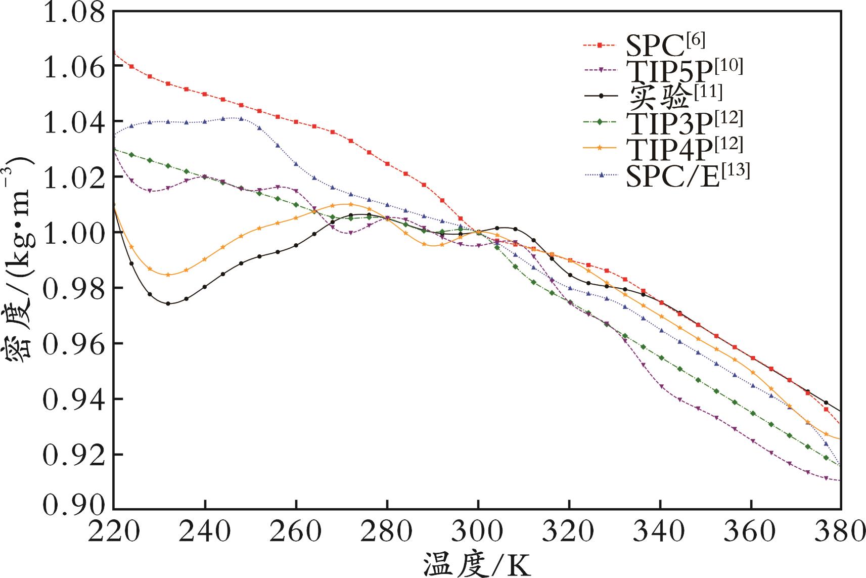 | SPC | H.J.C.BERENDSEN等[ | 刚性结构;L⁃J势 | 自扩散系数相对误差200%~300% | 液态水基础模拟 |