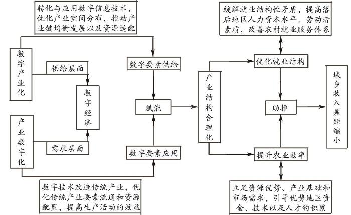 缩小城乡收入差距是我国稳步推进共同富裕的重要内容。基于2013—2021年我国30个省级行政区的面板数据,研究了数字经济发展水平与城乡收入差距之间的内在联系。结果表明,数字经济有利于缩小城乡收入差距,且产业结构合理化发挥部分中介效应;在人力资本水平较高的区域,数字经济发展能有效缓解城乡收入差距,且产业结构合理化发挥完全中介效应,但在人力资本水平较低的区域,数字经济对城乡收入差距并不产生显著的影响;当经济发展水平较低时,数字经济会扩大城乡收入差距,而当经济发展水平较高时,数字经济会缩小城乡收入差距。基于此,提出了推动产业数字化和数字产业化协调发展、深入推进产业结构合理化、提升人力资本水平以及优化数字经济发展环境等建议,以发挥数字经济推动产业结构合理化及缩小城乡收入差距的作用。