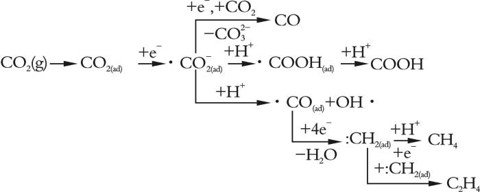 Hori Y, Murata A, Takahashi R. Formation of hydrocarbons in the electrochemical reduction of carbon dioxide at a copper electrode in aqueous solution[J]. Journal of the Chemical Society, Faraday Transactions 1: Physical Chemistry in Condensed Phases, 1989, 85(8): 2309⁃2326.