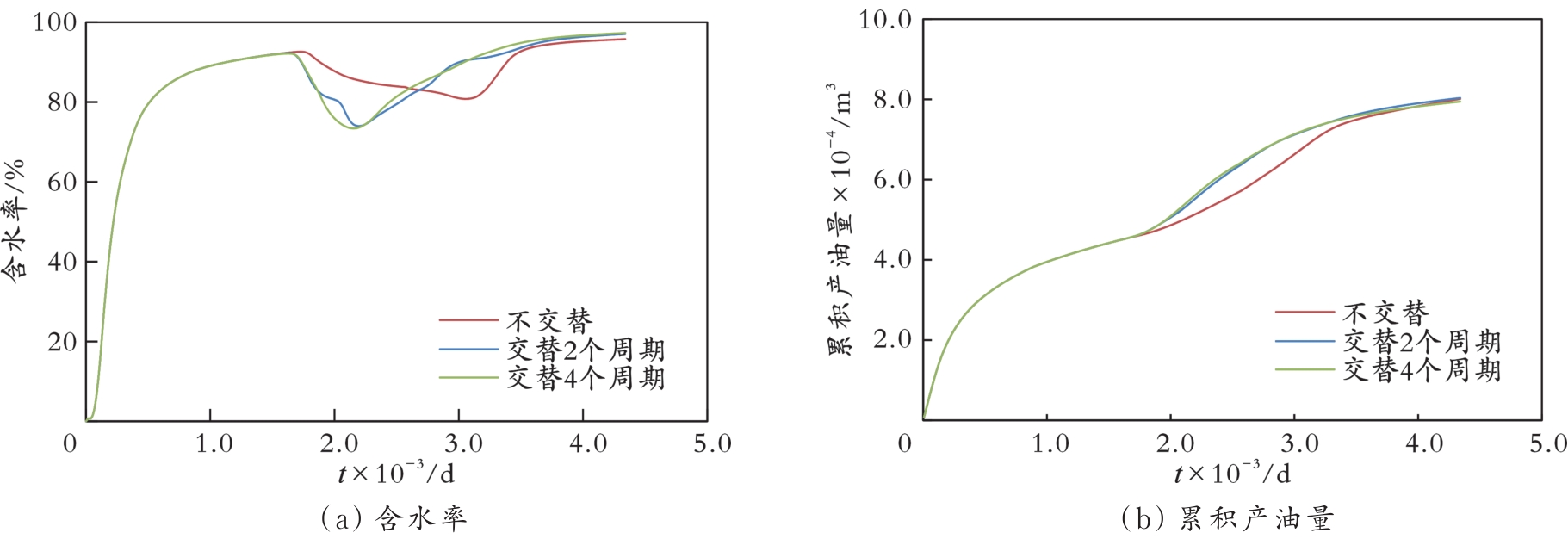 海上化学驱过程中井网加密后水驱井网和聚驱井网共存,对开发效果具有重要影响。为定量表征海上聚合物驱油田水聚扰动程度,提出了考虑注入水和注入聚合物驱替体积动态变化的水聚扰动系数,结合水聚扰动系数分析了不同驱替方式下的生产特征和规律,并讨论了调控策略。结果表明,水聚同驱过程中注入水会压缩聚合物驱替区域,对聚合物前缘产生一定的干扰;水聚扰动系数与阶段净增油曲线具有较好的相关性,根据水聚扰动系数可以将水聚同驱过程划分为5个典型阶段;水聚同驱方式的初期产油量高于纯聚合物驱方式,但整体产油量低于纯聚合物驱方式,通过水聚交替的方式可均衡驱替前缘,改善开发效果。研究成果对分析水聚同驱过程、定量表征水聚扰动程度以及制定后续调控措施具有一定的指导意义。