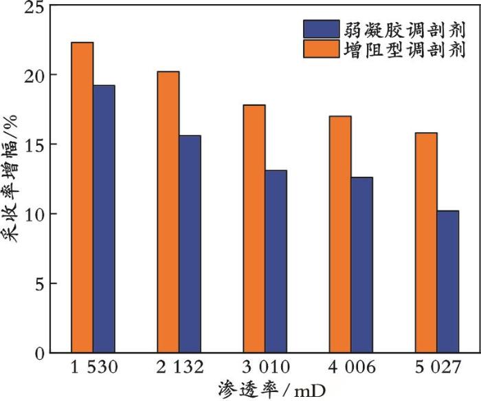 为确保渤海海上油田多轮次调剖效果,对一种增阻型就地凝胶调剖剂的油藏适应性进行了系统研究。采用黏度法、流变分析、扫描电镜等分别表征了调剖剂的成胶性、热稳定性及成胶后的微观形貌;通过填砂管实验,系统评价了调剖剂的色谱分离行为、注入性、封堵性、选择性及提高采收率效果。结果表明,该调剖剂初始黏度低,注入性及深部运移性能良好,且油藏中的色谱分离行为弱;在油藏温度为65 ℃的条件下,调剖剂成胶时间长,成胶黏度高,热稳定性良好,成胶后呈以微球为交联节点的三维网络结构,在剪切速率为4~12 s-1时具有剪切增稠特性;调剖剂具有优良的选择性封堵性能,能优先进入油藏窜流区域形成封堵,对油层的堵油率低;该调剖剂提高采收率效果明显,注入1.000 PV后,原油采收率增幅达15.0%~23.0%。总之,增阻型就地凝胶调剖剂能较好地适应渤海海上油田油藏特征,可实现油藏深部调剖。